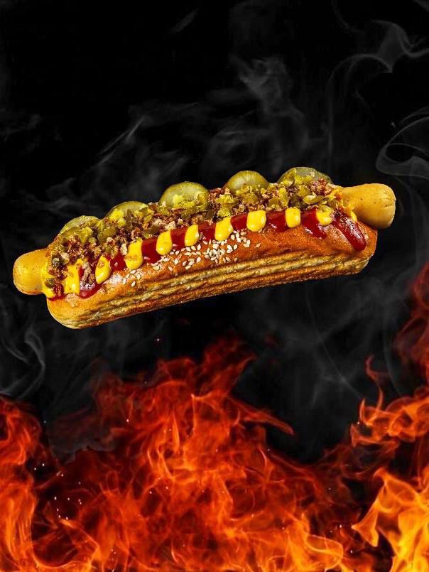 Хот-дога «Огниво» с халапеньо, горчицей и острым соусом кимчи